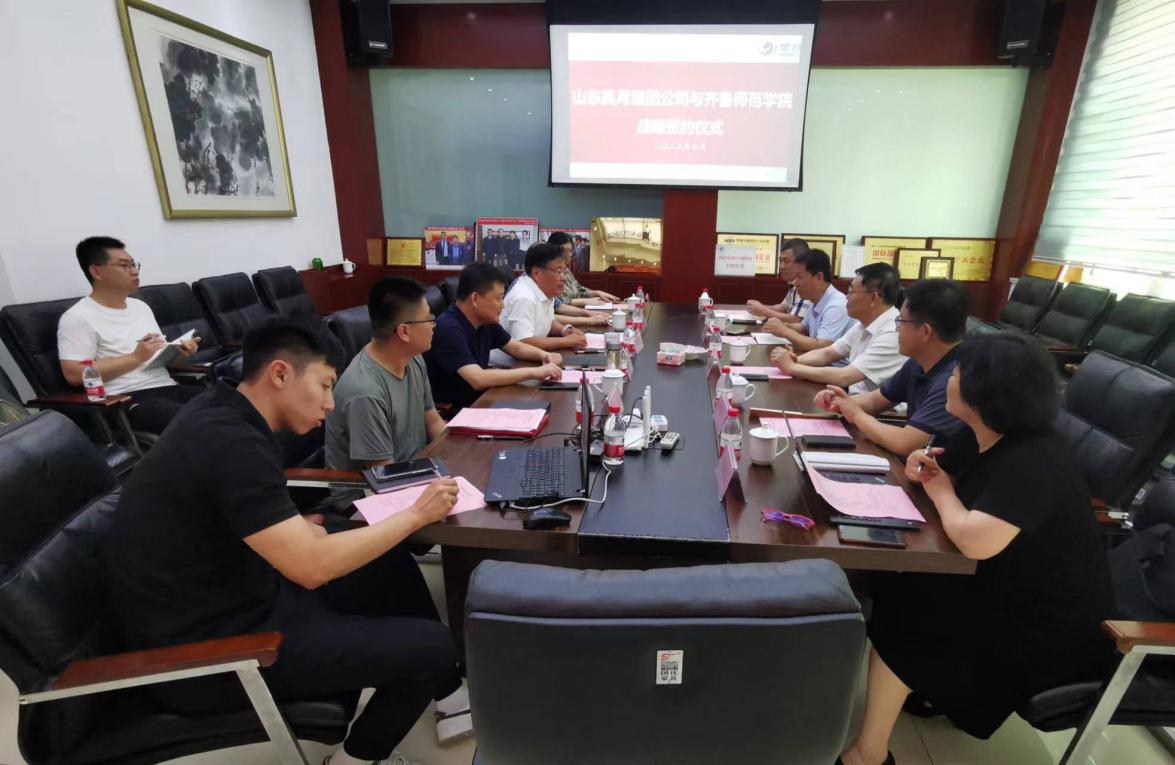 山东昊月新材料股份有限公司总经理杨阳、副总经理泰山产业领军人才姚美芹,学校人事处处长刘增军、合作发展办公室主任刘勇等一同参加会议。