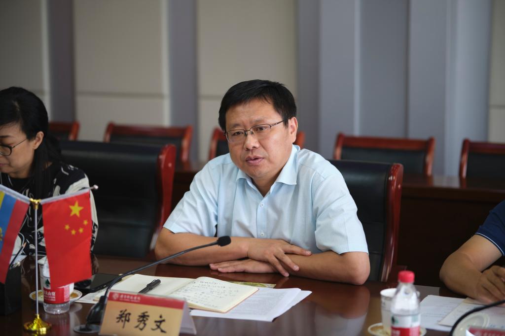 座谈会上,郑秀文首先代表学校向米格尔校长一行表示热烈欢迎,并详细介绍了学校的学科设置、师资力量、人才培养等情况。他表示,中厄两国建立了全面战略合作关系,学校非常重视与拉美国家在科教领域方面的合作,北方科技大学此次来访对学校与厄瓜多尔高校建立深厚友好合作关系具有十分重要的意义,希望在“优势互补、互惠互利”基础上,推动双方在高层次人才培养、中外合作办学、硕博联合培养、天文实验室建设等领域取得更多合作成果。