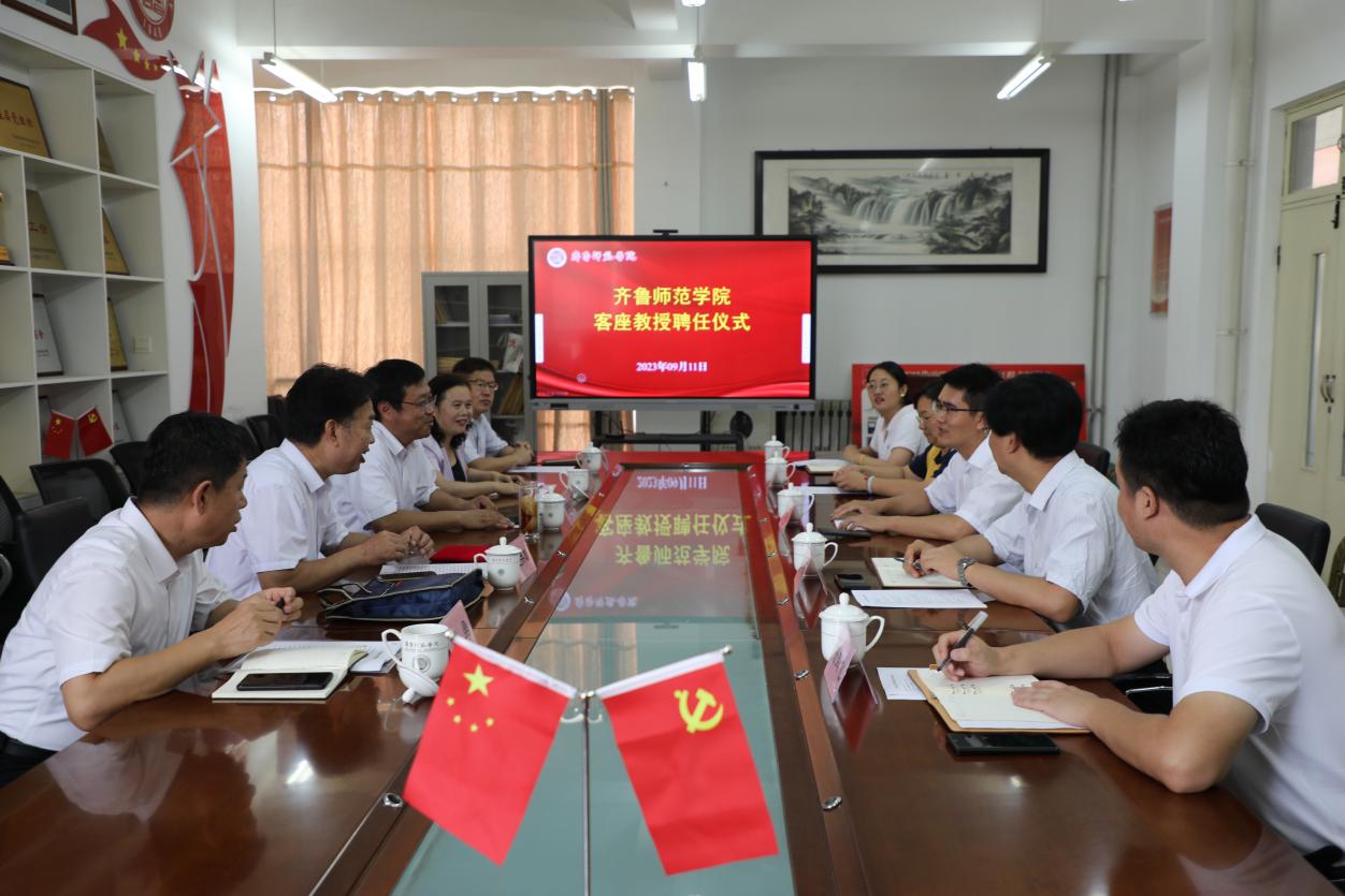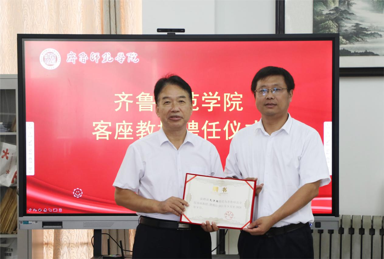 9月11日上午,学校政教系93届校友、济南大学马克思主义学院原院长、新时代中国特色社会主义研究中心主任、硕士生导师文洪朝教授受聘客座教授仪式在马克思主义学院会议室举行。学校党委副书记、校长郑秀文,党委副书记赵敏出席仪式。人事处处长刘增军、合作发展办公室主任刘勇及马克思主义学院党政有关人员参加活动。