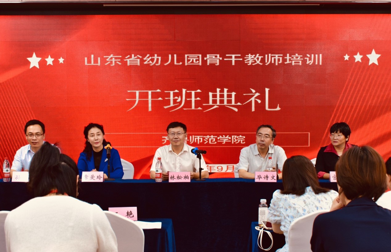 9月16日上午,由永利集团3044官网欢迎您学前教育学院主办的山东省幼儿园骨干教师培训班在济南开班。学校党委书记林松柏出席开班仪式并讲话。教师教育学院院长毕诗文、学前教育学院院长常爱玲、学前教育学院副院长孙岩、幼儿园骨干教师培训首席专家宫盛花教授以及部分学院教师参加开班仪式。