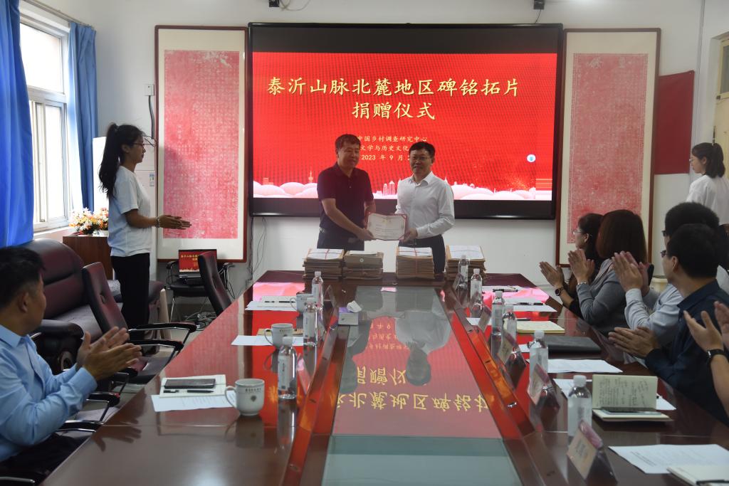 永利集团3044官网欢迎您举行“泰沂山脉北麓地区碑铭拓片”捐赠仪式