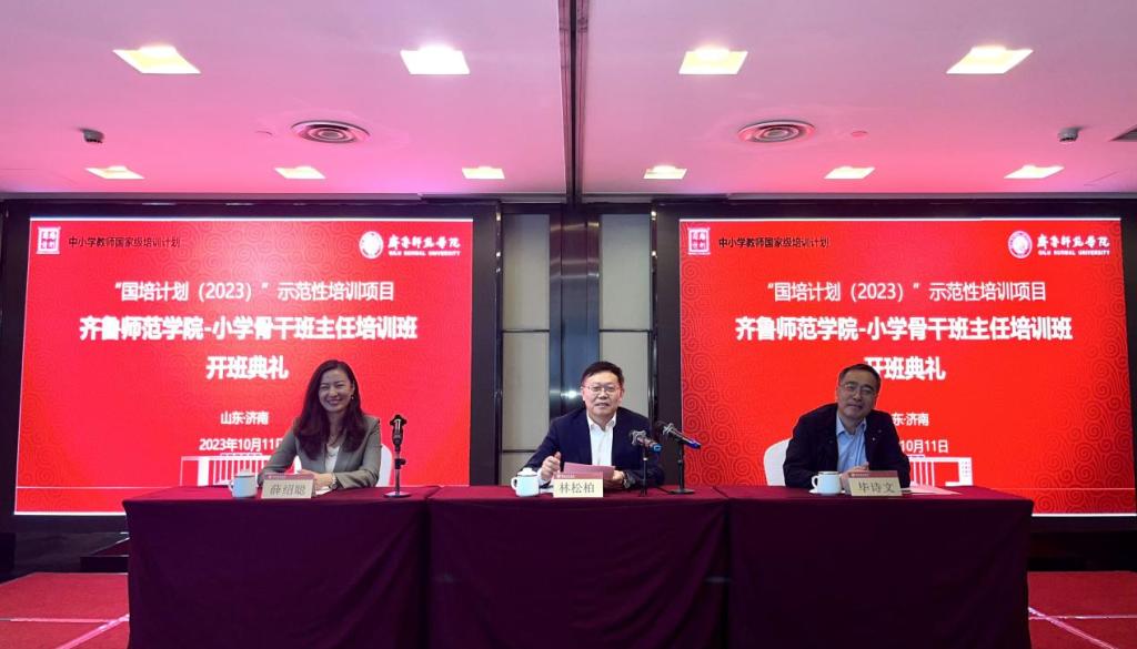 10月11日上午,由永利集团3044官网欢迎您教师教育学院承办的“国培计划(2023)”示范性培训-永利集团3044官网欢迎您小学骨干班主任研修培训班在济南顺利举行。学校党委书记林松柏出席开班典礼并致辞。教师教育学院院长毕诗文、副院长薛绍聪参加开班典礼,典礼由毕诗文主持。