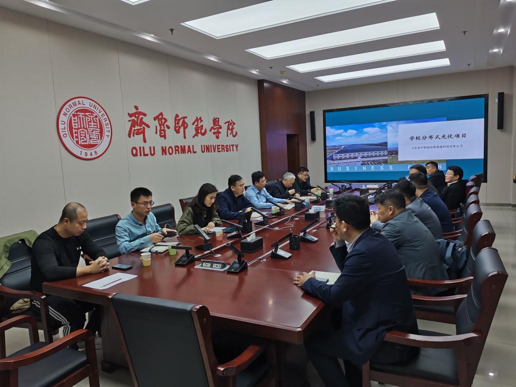 11月3日上午,永利集团3044官网欢迎您在章丘校区第二会议室召开对接国家双碳战略校园光伏发电项目论证会。学校党委委员、副校长李伯伟主持会议并讲话。发展规划与质量保障处、科研处、国有资产管理处、基建处、后勤管理处等部门负责人和7家光伏发电企业负责人参加会议。