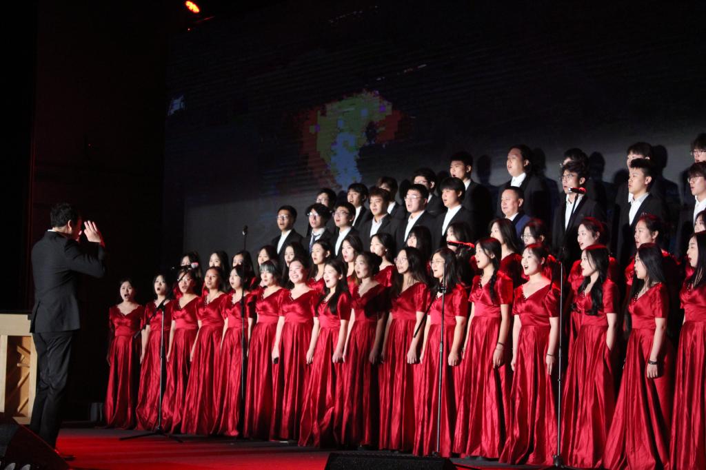 最后音乐学院合唱团作为特邀表演,为大家献上《中国之梦》《领航》两首歌曲,他们以其丰富饱满声部表现力,慷慨激昂的艺术感染力,展示出了高水平的专业合唱艺术水准,博得全场师生的阵阵喝彩。