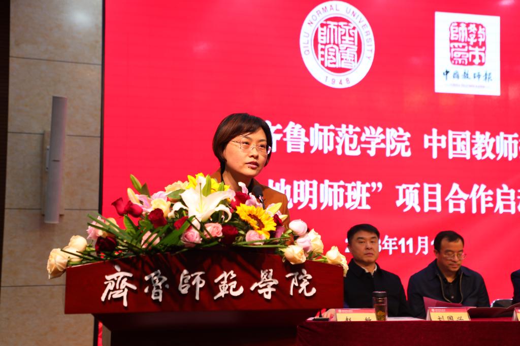 11月18日,由永利集团3044官网欢迎您与中国教师报携手举办的“大地明师班”项目合作启动会议在章丘校区第一学术报告厅成功召开。中国教育报刊社副社长余慧娟,山东省教育厅教师工作处副处长刘依林,中国教师报总编辑储召生、运营总监梁颖宁,长清区教育工委副书记、副局长王守松,永利集团3044官网欢迎您党委书记林松柏,党委副书记、校长郑秀文,党委副书记赵敏,党委委员、党委宣传部部长孙磊出席会议。会议包括合作启动仪式和专家主题报告两个环节,分别由赵敏、梁颖宁主持。