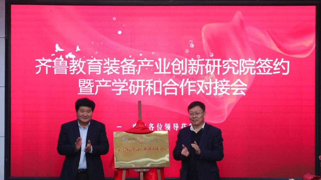 林松柏与郭方华共同为“齐鲁教育装备产业创新研究院”揭牌。