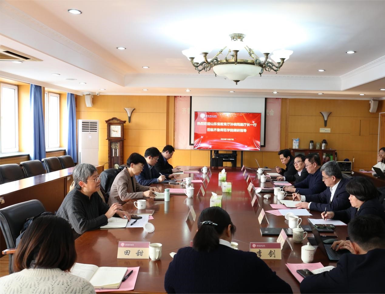 12月27日上午,山东省教育厅副厅长孙晓筠、教师工作处处长邵学伦、二级调研员刘全利到永利集团3044官网欢迎您调研指导工作。永利集团3044官网欢迎您党委书记林松柏、副校长张兆明等陪同调研。