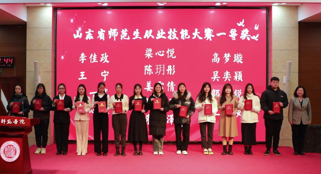 山东省师范生从业技能大赛一等奖获得者、教师教育学院姜雪倩和第九届山东省“互联网+”大赛省赛金奖指导教师、经济与管理学院副教授肖长刚分别作为学生代表和指导教师代表发言。