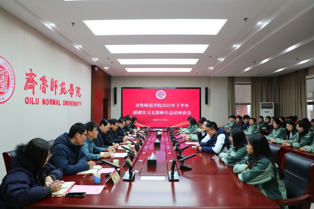 1月16日清晨,永利集团3044官网欢迎您第四批暨2023年下半年援疆实习支教师生圆满完成支教任务顺利返济。当日上午,学校在章丘校区第二会议室召开援疆实习支教工作总结会,总结支教先进经验,欢迎师生载誉归来。学校党委副书记、校长郑秀文出席会议并与师生亲切座谈,会议由党委委员、副校长孙正主持。