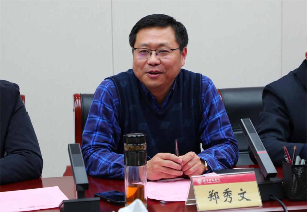 支教带队教师、外国语学院教师林德奖代表援疆实习支教团全体师生汇报了团队工作情况和取得的成绩,分享了援疆工作感悟,表达了真挚的师生情、同事情、鲁疆情。