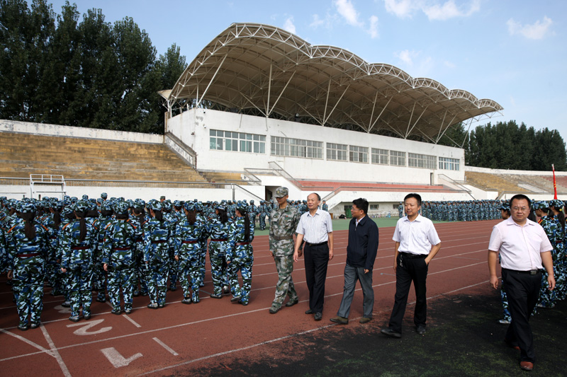 9月20日上午,王玉华校长来到军训现场看望军训教官和参训新生。校长办公室、宣传部、学生处的负责同志陪同看望。