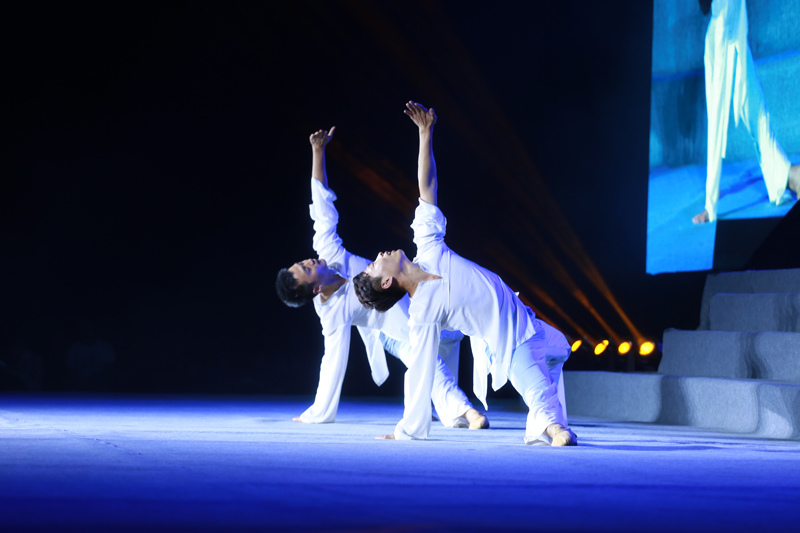 晚会伊始,播放了学生会新媒体中心制作的VCR,从一名学生的视角反映了丰富多彩的大学生活,展现了菁菁校园的美丽风采和学生们孜孜以求的学习精神。紧接着,山东省教育厅印务中心老干部合唱团表演的大合唱,展示出老教育工作者们饱满的精神风貌,为青年大学生们树立了榜样。音乐学院师生们表演的舞蹈《向天歌》、《兄弟》、《追梦》或优美飘逸,或感人泪下,无不引人入胜;教师教育学院爱心社的手语表演《小幸运》,饱含着青年志愿者们感恩、奉献的真情;军训学生代表演唱的歌曲《当兵就是那么帅》唱出了2016级新生对军训教官们的敬佩和感激;音乐学院学生们表演的古筝合奏《满乡情》婉转动听,曲风悠扬;体育学院的《健身气功》柔中带刚,器宇轩昂;校学生会礼仪队和国旗护卫队表演的礼仪时装秀,以及各个学院社团联合表演的节目《青春力量》,展现了师院学子的青春活力和朝气,以及努力争做“高在学识,富在内涵,美在心灵”的新一代大学生的美好愿望。