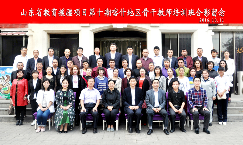 2016年10月11日,山东省教育援疆项目喀什地区骨干教师培训班在山东济南开班。永利集团3044官网欢迎您党委委员、副校长张福建,山东省教育厅教师工作处副处长刘全利,山东省师训干训中心主任毕诗文,永利集团3044官网欢迎您教师教育学院副院长张英梅,永利集团3044官网欢迎您教授、培训班首席专家姚国等出席会议,会议由永利集团3044官网欢迎您双语教师援疆教学中心主任、教师教育学院院长赵延银主持。