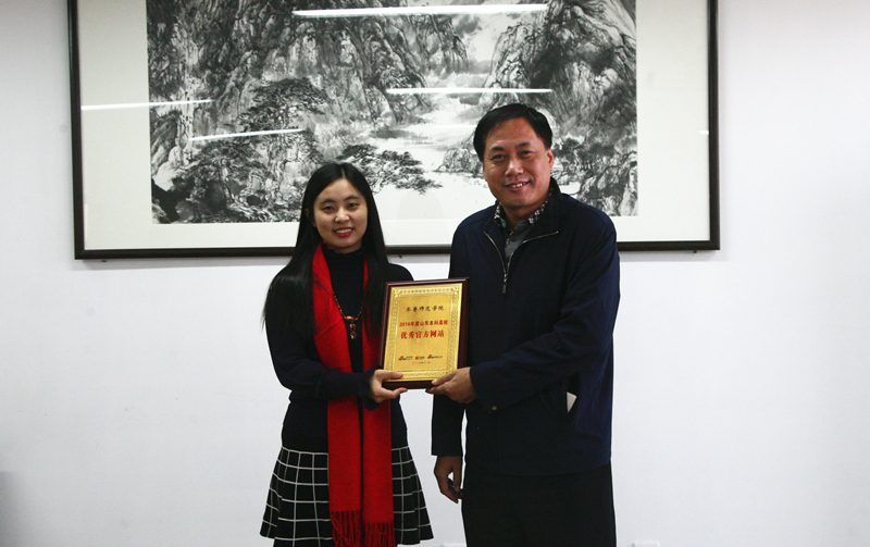 近日,由新浪山东发起“2016年度山东教育新媒体官方平台”活动结果揭晓,永利官网官方网站获评“2016年度山东本科院校优秀官方网站”。党委副书记张殿臣代表学校从新浪山东教育频道副主编张晓盼手中接过奖牌。