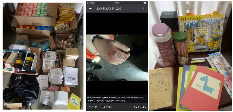 孙运财没有选择观望等待,他启动了自己的爱心接力计划。3月2日一早,他找到校长,对1900名在校小学生进行了摸底统计,分类筛查出了孤儿、留守儿童、家庭经济困难儿童,分别整理出了急需帮助的详细花名册。3月3日22:03,孙运财在自己的QQ群、微信群发出了倡议,号召朋友们一同关注留守少年、关爱家庭经济困难儿童,奉献自己的爱心,向他们提供力所能及的帮助,手挽手一起建设更加美好的家园。3月4日,一天的时间里,为孙运财点赞的好友就达到276人,接力转发的15人,众好友被孙运财的担当精神所感动,纷纷伸出热情的双手。随后一周多的时间里,170余件包裹从齐鲁大地四面八方快递过来,1000册练习本、1000支铅笔、24支钢笔、300袋尺子、70套水彩笔蜡笔、240个保温杯、200块橡皮、10个足球,还有创可贴、扎头绳等等,后续的捐物仍在不断往这汇集着……