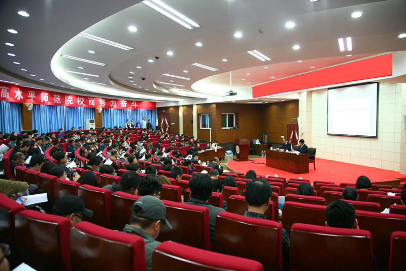 党委书记王玉华首先对迎评工作作动员讲话。他指出:此次动员大会的召开,标志着永利官网迎评工作正式进入倒计时。这是迎评工作的战前动员会,目标明确、任务单纯,全校上下要团结一致,站位全局,服从大局,聚精会神促评建,真抓实干搞教学,全心全意做服务。同时,代表学校党委提出三点要求:一要统一思想,提高认识,增强紧迫感;二要对照标准,尽心尽责,真抓实干;三要落实责任,严明纪律,实现目标。相信在全校教职员工的共同努力下,一定能够圆满完成此次本科教学合格评估,开创永利官网发展的新局面!