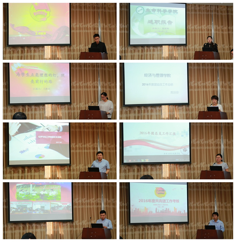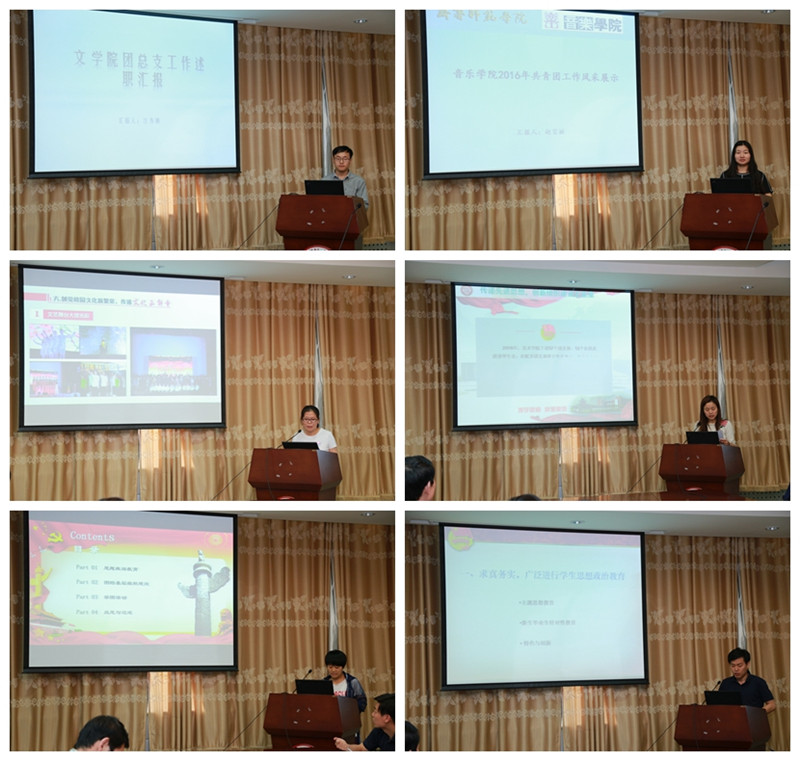 本次考核以《2016年山东省共青团学校工作要点》和2016年永利官网学生处、团委工作要点为依据,参照《山东省高校共青团工作考核细则》的相关标准,结合永利官网实际,本着“突出重点、激励创新;实事求是、公平公正;便于操作、易于考核”的原则,采取项目工作与现场述职相结合的方式进行。在汇报会上,各学院团总支从组织建设、宣传工作、思想引领、校园文化、社团活动、学风建设、创新创业、社会实践、志愿服务等方面汇报展示了各自的工作特色和品牌亮点,思路清晰、内容凝练、案例丰富。最后,教师教育学院、音乐学院、经济与管理学院、马克思主义学院荣获 “红旗团总支”荣誉称号;美术学院、体育学院、物理与电子工程学院、历史与社会发展学院、数学学院被评为“先进团总支”;信息科学与工程学院被评为“科技创新优秀奖”;生命科学学院被评为“社会实践优秀奖”;文学院被评为“学风建设优秀奖”;化学与化工学院被评为“团建工作优秀奖”;外国语学院被评为“宣传工作优秀奖”。