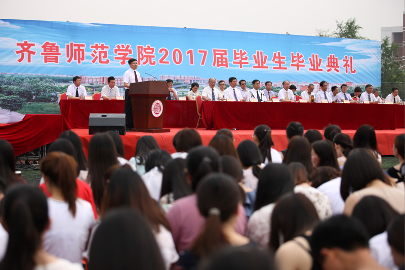 2017届毕业生代表,历史与社会发展学院李蕾同学在发言中回忆了在学校求学期间的点点滴滴,表达了对母校的感恩之情和祝福。教师代表,美术学院杨三军教授寄语毕业生:不要忘记学习,要学会做人,要不忘良知。“天行健,君子以自强不息。地势坤,君子以厚德载物“,祝愿和期待同学们将来有更大的进步和作为。