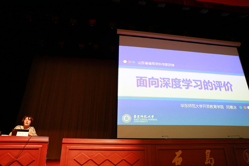 华东师范大学开放教育学院副院长、教育部能力提升工程项目办公室执行主任闫寒冰教授作了题为《面向深度学习的评价设计》的专题报告。