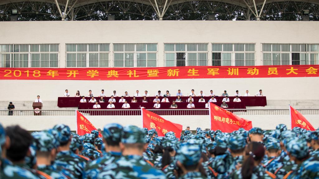 在悠扬的校歌声中,2018年开学典礼暨新生军训动员大会圆满结束。