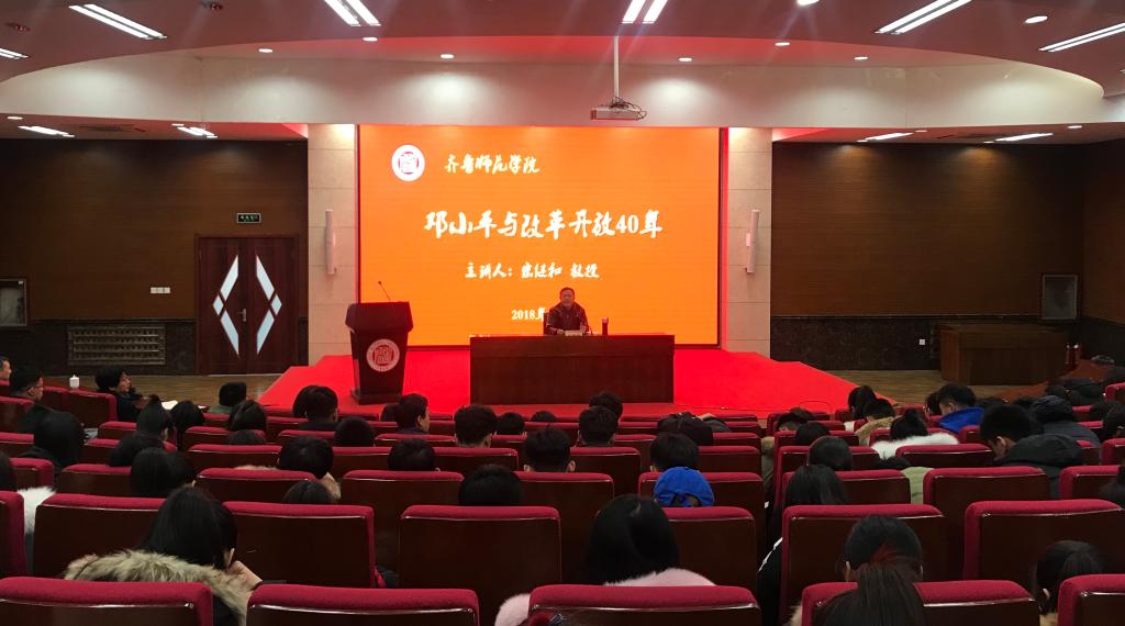为贯彻落实全国教育大会精神,展现改革开放40年国家发展成就,进一步增强永利官网广大青年学生的爱国主义情怀和家国天下的责任感、使命感,引导学生坚定“四个自信”、加深“四个正确认识”,永利官网举办庆祝改革开放40周年主题教育系列活动。12月14日下午,永利官网在图书馆学术报告厅举办了《邓小平与改革开放40年》专题学术报告。马克思主义学院宋继和教授担任报告主讲人,学生工作部(处)副部长贾龙作为辅讲并主持了报告会。各学院辅导员和学生代表300余人参加了报告会。