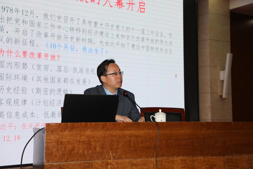 下午,钱学锋为经济与管理学院的学生做了题为“我比改革开放小一岁——庆祝改革开放四十周年”的学术报告。他从三个方面系统分析了中国改革开放历程:首先是从国内形势、国际环境、历史经验和客观规律四个方面分析中国为什么要改革开放;其次分析了改革开放40年进程。将改革开放40年分为起步阶段、全面展开阶段、新阶段、持续推进阶段和全面深化阶段五个阶段;在最后他分析了中国改革开放的成就及面临的挑战。钱学锋的报告深入浅出,使同学们对改革开放有了更加深入的了解,进一步拓宽了学生们的视野,激发了学生们的学习热情。
