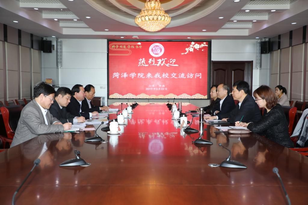 3月22日,菏泽学院党委书记王焕良一行来永利官网交流访问。党委书记王玉华,副校长张福建会见了客人,校长办公室、学生工作部(处)负责人参加了座谈。