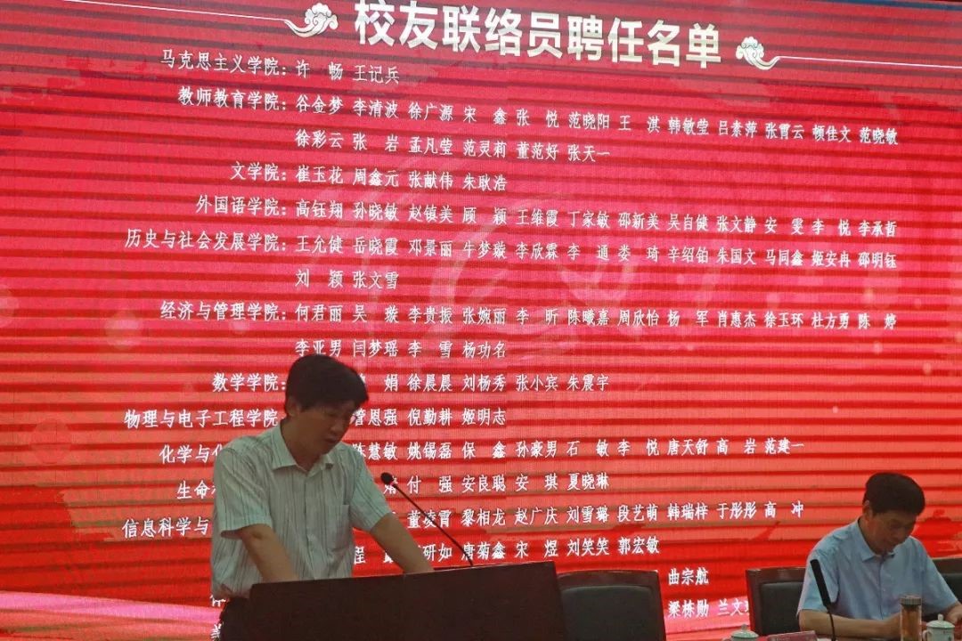 会上,贾龙副处长宣读了关于聘请许畅等同学为校友联络员的通知及《永利集团3044官网欢迎您校友联络员工作职责》,强调校友联络员的权利与责任。校友联络员要掌握校友会校友的情况,积极参加各种联谊,并且要加强同学与母校的联系,及时更新班级通讯录,报道校友优秀事迹,展现母校风采。