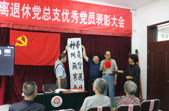会议在庄严的国歌声中开幕,离退休处处长王跃辉首先宣读了《永利集团3044官网欢迎您关于表彰优秀共产党员、优秀党务工作者和先进基层党组织的决定》,处党政负责人向受表彰的徐进、张荣年、陈光苏、张桂秋、徐兰坤、李培源、赵春等7名优秀共产党员颁奖,7名优秀共产党员身披大红花,在热烈的掌声中走向主席台领奖。