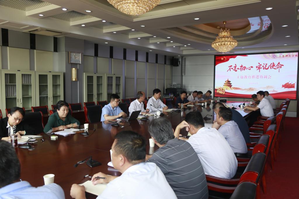 为进一步推进“不忘初心、牢记使命”主题教育工作扎实有效开展,9月26日上午,学校召开“不忘初心、牢记使命”主题教育推进协调会,党委书记王玉华出席并讲话,党委委员、副校长张福建主持会议。党委组织部部长,机关党委、各党总支书记参加会议。