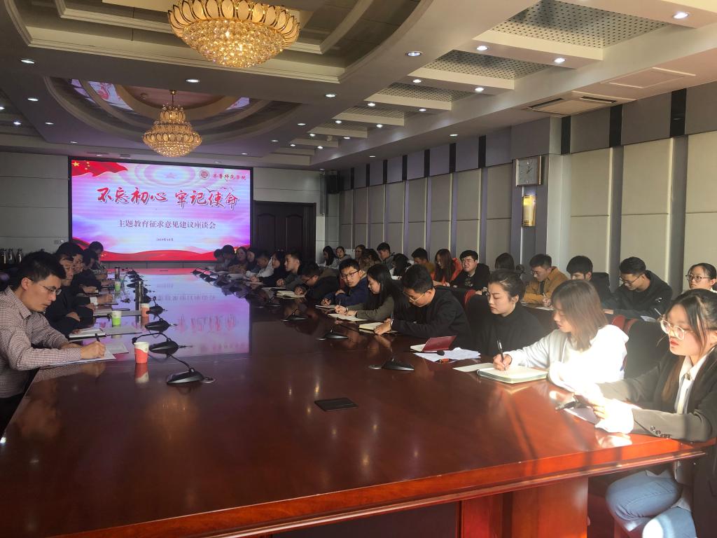 10月15日下午,永利官网在章丘校区图书馆四楼会议室组织召开“不忘初心、牢记使命”主题教育学生层面的征求意见建议座谈会,校党委委员、副校长张福建出席座谈会,党委办公室、组织部、学生工作部(处)、党委保卫工作部、教务处、后勤管理处、图书馆负责人以及各学院28名学生代表参加了会议。