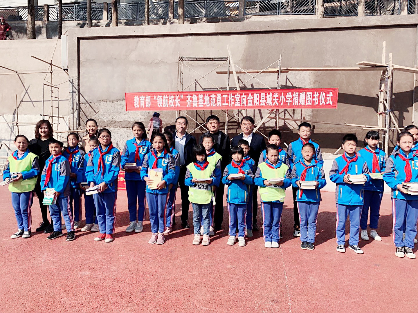 山西省实验小学、福建福清市城关小学、辽宁昌图县实验小学、合肥市南门小学对口帮扶金阳县城关小学,金阳县教体科局的张志坚主任陪同毕诗文主任、黄雯副局长及领航名校长到金阳县城关小学调研。领航名校长范勇向金阳县城关小学捐赠了2200册图书,给孩子们带来了宝贵的精神食粮,福清市夏金校长给金阳县中小学送来智慧校园软件。城关小学的阿苦校长及班子成员带领基地领导和领航名校长们参观了校园,介绍了城关小学的发展历史和未来的规划,走进教室听课。在座谈会上听取了支教教师们的汇报后,毕诗文主任指出,只有全身心的投入的经历才是财富,大凉山扶贫支教活动是每位教师一生中难得的经历,每一位支教教师都要不忘教师初心,牢记教育使命,全身心投入到大凉山的支教活动中。
