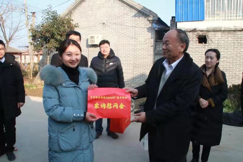 走访组首先来到学生小彭家。小彭家有四位体弱多病的老人需要赡养,弟弟上学,父母靠务农和打零工维持家计。在了解到小彭在校表现优异,多次荣获国家励志奖学金、校级奖学金和“优秀学生”荣誉称号之后,王玉华书记十分赞许她自强不息的精神,听说小彭刚刚参加了研究生考试,他高兴的鼓励小彭并预祝她考上理想学府,他说:“学校会尽力帮你克服困难、渡过难关,今后你要好好学习,孝敬父母,回报国家。”终兴镇党委书记刘爱菊仔细询问学生家庭需求,她表示:“有困难,提出来,政府一定会帮助解决。”最后,小彭激动地说到,感谢学校、感谢老师,一定不负重托,好好学习,将师院精神传承下去,奋发图强,将来回报母校,报效国家。