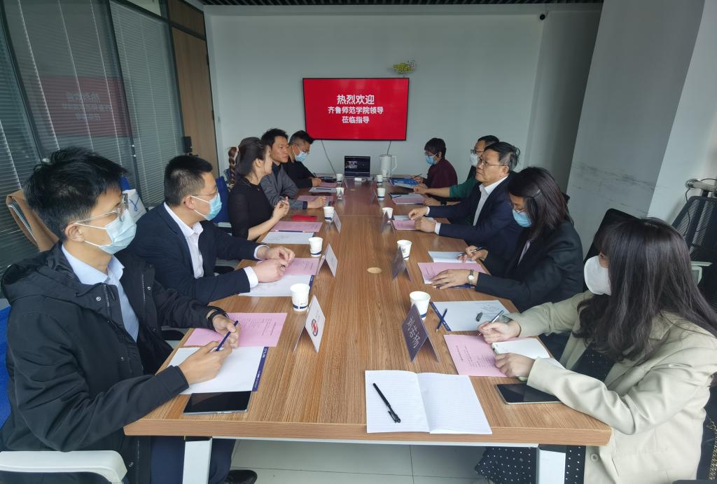 林松柏一行先是现场考察了校企合作单位山东开创集团开创云平台、智能展厅、研发办公区,听取企业负责人的情况介绍。之后,与阿里巴巴、百思特捷讯、中惠泽石油华泽金融、平安银行、山东开创信息有限公司、山东开创云计算有限公司等6家企业进行现场座谈交流,共同就人才培养、教学改革、项目孵化、实习就业等方面进一步深化合作,取得更多成果达成共识。