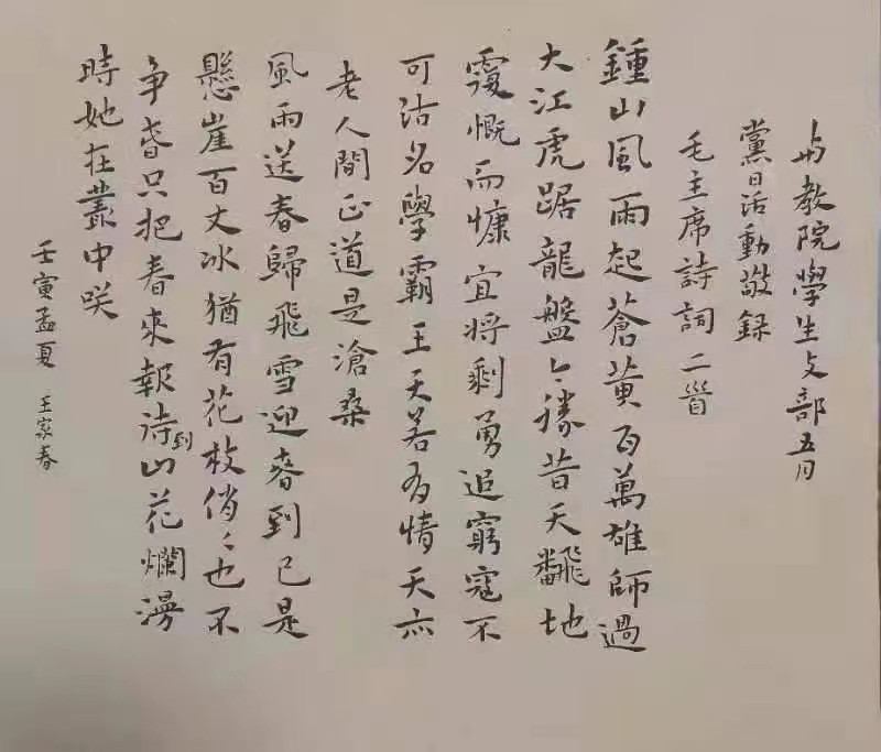 一场传承之约,一次信仰共谈。在云中锦书篇章中,离退休干部党支部老党员对教师教育学院青年学子在书信的表达中给予厚望。原学校党委书记周桂珍在信中深情地写道:“同学们,咱们虽未曾谋过面,彼此还不熟悉,但是80个字的入党誓词把我们的心连在一起,永利集团3044官网欢迎您这一片热土把我们的情牵在一起;咱们先后在同一面党旗下进行过庄严的宣誓和承诺,也先后在同一所校园里实践着‘博学明道、崇德象贤’的精神和追求......我作为你们的师长,一名教育工作者,一名老党员给你们说几句话。一是要懂得珍惜;二是要不断励志;三是要勤奋;四是要有担当。”2018级小学教育普通本科班学生郭甲莉在回信中写道:“感谢周书记的谆谆教诲,感谢您赠予我们青年学子的经验之谈,我们青年人要与新时代同向同行、共同前进,青年人一要有灵魂;二要有本事;三要有血性;四要有品德。”