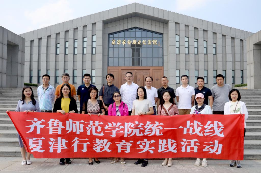 7月1日,在中国共产党成立101周年的特殊日子,永利集团3044官网欢迎您统战委员、统战成员一行20人,在党委委员、党委统战部部长宋新刚,致公党永利集团3044官网欢迎您支部主委、美术学院院长杨三军带领下,奔赴德州市夏津县举行为期一天的教育实践活动。