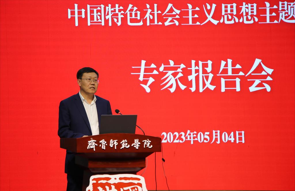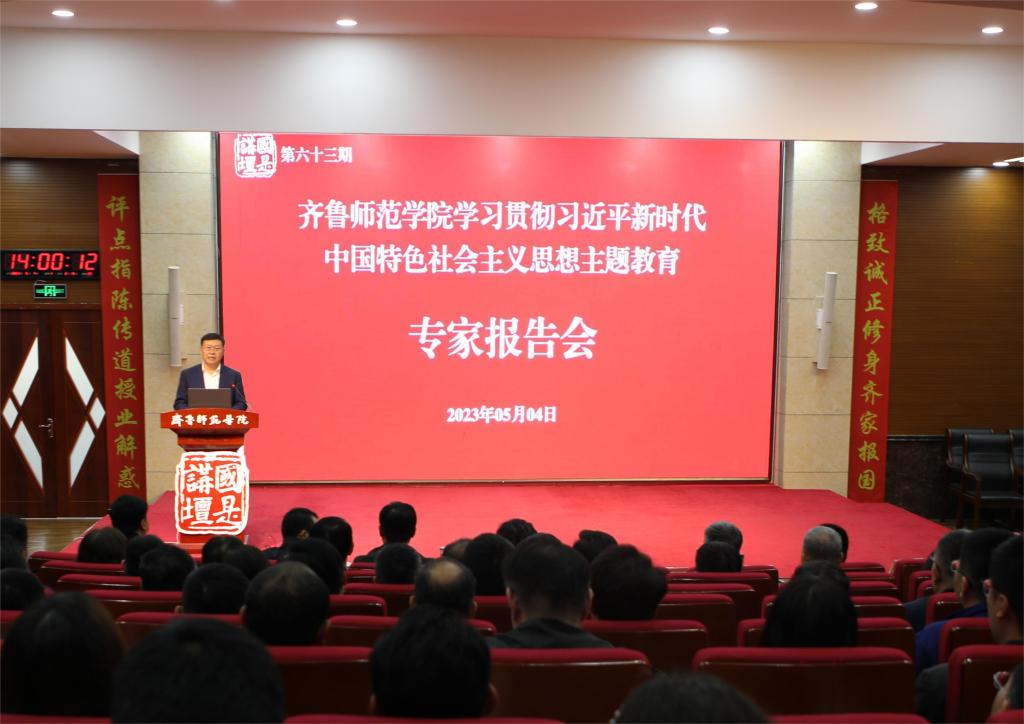 5月4日,“国是讲坛”第六十三期暨主题教育读书班专家辅导报告在永利集团3044官网欢迎您章丘校区学术报告厅举办。天津大学马克思主义学院院长、博士生导师颜晓峰教授应邀作题为《习近平新时代中国特色社会主义思想的科学体系、核心要义、实践要求》的辅导报告。党委书记林松柏主持报告会,学校领导班子成员、全体中层干部、各党支部书记、全体思政课教师及学生代表聆听报告。