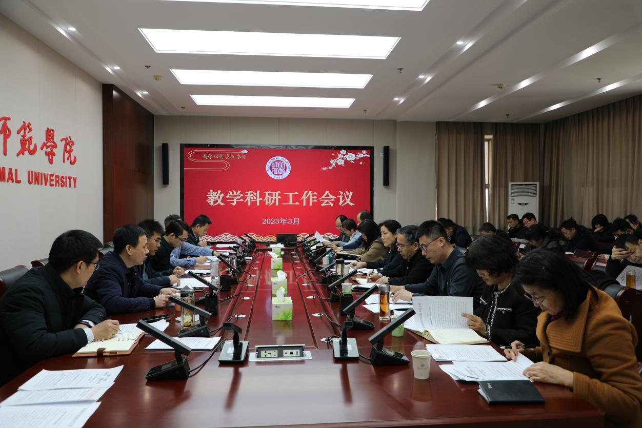 3月3日,永利官网在章丘校区图书馆五楼会议室召开教学科研工作会议。参加本次会议的有党委委员、副校长孙正,发展规划与质量保障处、教务处、科研处、合作发展办公室、财务处主要负责人及各二级学院院长、副院长。会议由孙正主持。