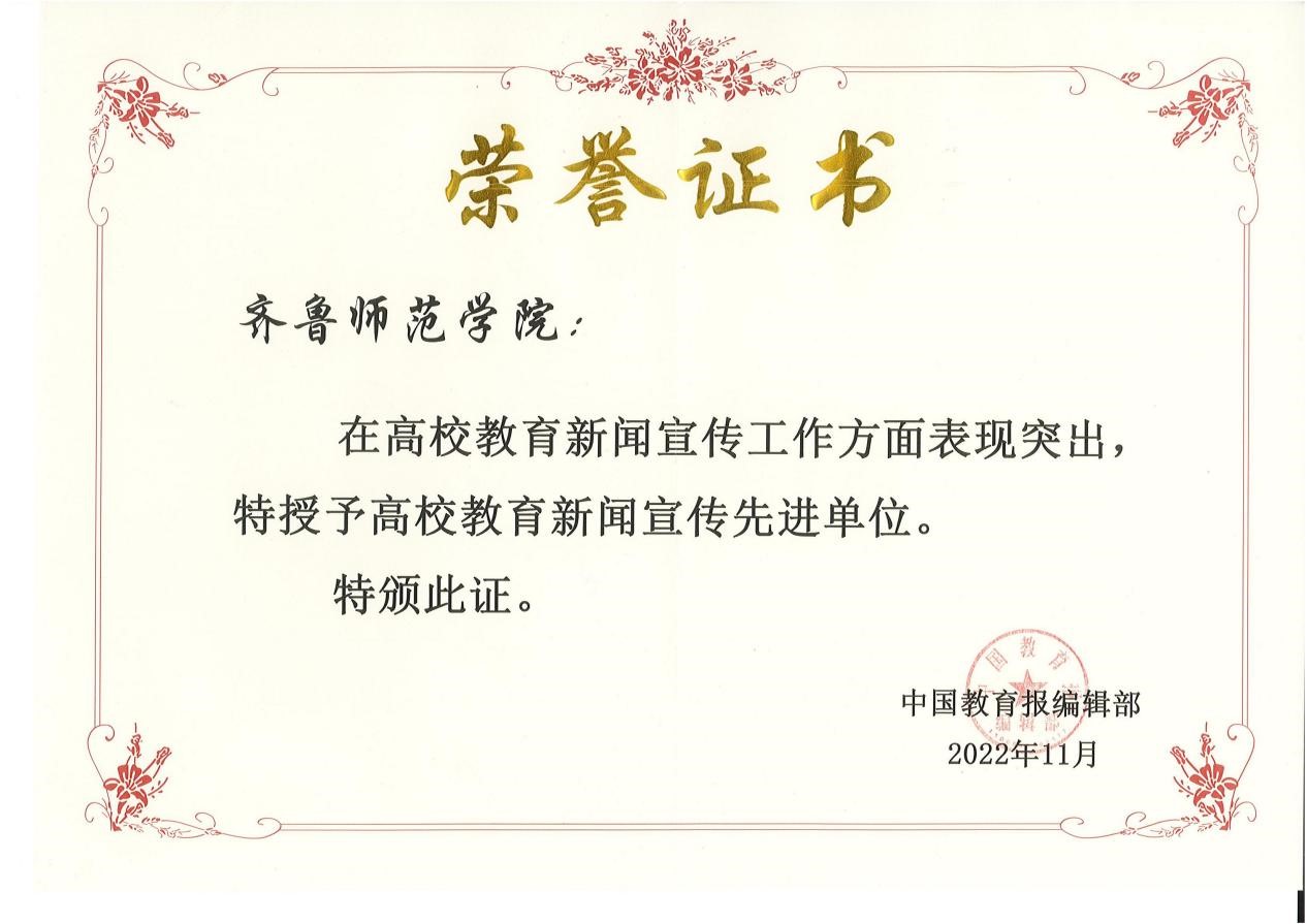 近日,在中国教育报编辑部开展的年终新闻宣传工作总结评选中,永利官网被授予2022年度“高校教育新闻宣传先进单位”称号。