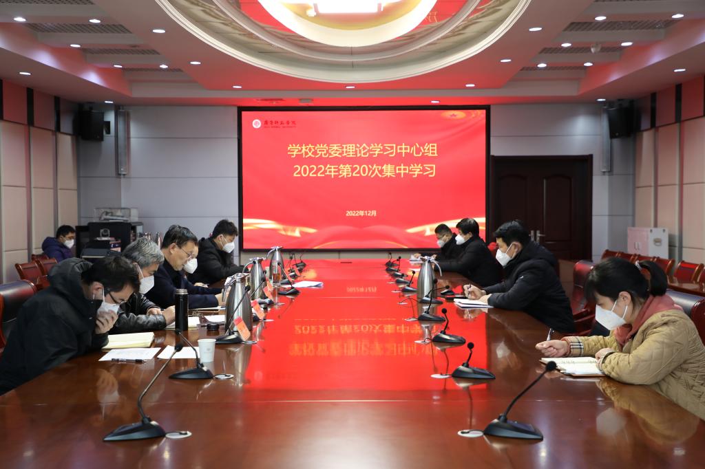 12月27日,学校党委理论学习中心组在章丘校区图书馆四楼会议室举行集中学习。学校党委书记林松柏主持学习,学校党委理论学习中心组成员参加学习。