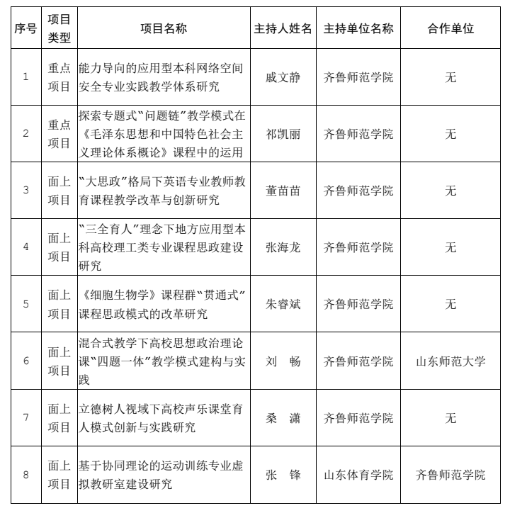 附件:2022年山东省本科教学改革研究项目立项名单