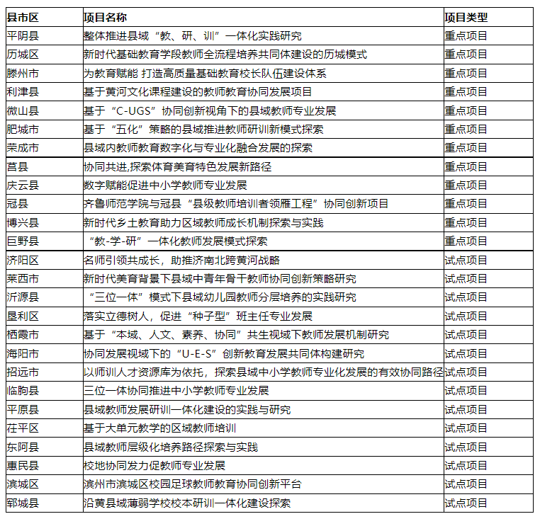 近日,山东省教育厅公布了2022年山东省教师教育协同创新项目名单,确定济南市平阴县等50个县市区为山东省教师教育协同创新项目试点单位,重点项目20项,试点项目30项。永利官网参与合作申报的项目共有26项获批,其中,获批重点项目12项,试点项目14项。