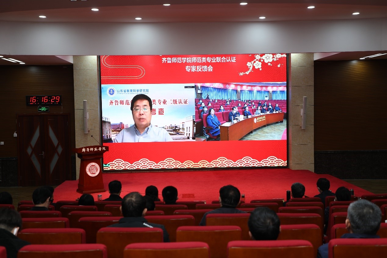 12月9日下午,专家组召开认证意见反馈会。李广平代表联合认证专家组对考查情况作总体反馈,四个师范类专业认证组组长分别简要概括了认证专业的特色优势与问题不足,专家组成员分别就所考查专业的问题及改进意见建议等作了详细反馈。专家组对学校高度重视专业认证工作给予充分肯定,同时指出了专业在对师范专业认证理念与标准核心内涵理解、教育实践教学实施与管理、落实认证“底线”要求等方面的问题与不足。