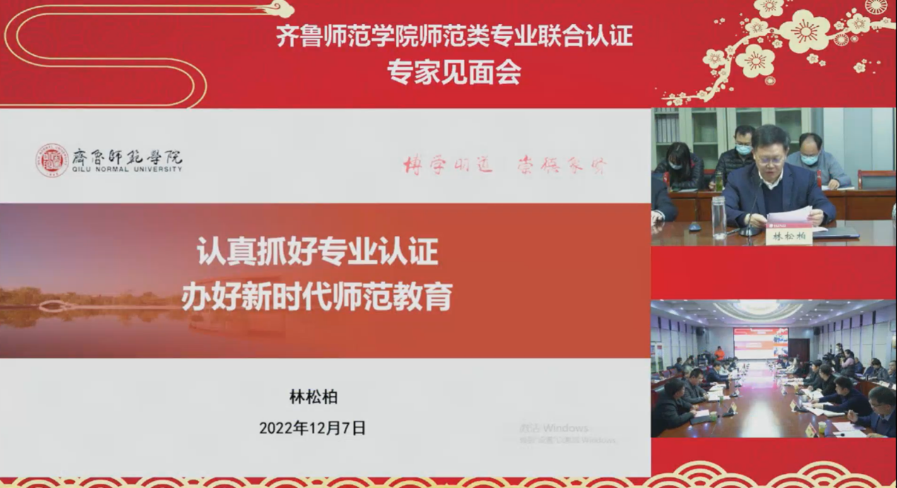 12月7日上午,联合专家组召开线上考查见面会。联合专家组全体成员,山东省教育科学研究院党委书记、院长申培轩出席见面会并讲话,会议由李广平主持。学校党委书记林松柏等领导班子成员,相关单位负责人,考查认证专业负责人和教师代表参加会议。