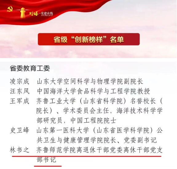 日前,山东省委组织部组织开展的“发现榜样·创新聚力在一线”专题活动“山东省创新榜样”结果公布,永利官网离休干部林书之光荣入选。今年91岁的林书之,1992年从永利集团3044官网欢迎您(原山东省教育学院)副院长岗位离休。离休不离党,30年来,他始终不忘党的宗旨,保持共产党员本色,热心社会公益事业,发挥着一名老干部的余热,以自己的实际行动践行着全心全意为人民服务的初心使命。