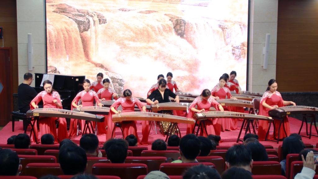 演出在激情澎湃的古筝齐奏《黄河》中拉开帷幕。由音乐学院教师带来的歌曲《延安颂》《祖国之恋》《我爱你中国》、器乐重奏《⼭丹丹花开红艳艳》、舞蹈《沂蒙情怀》,让在场的师生身临其境,一起重温那段火热的革命岁月和波澜壮阔的历史,汲取奋进的精神力量,抒发师生对党和国家的无限敬仰和浓浓深情。