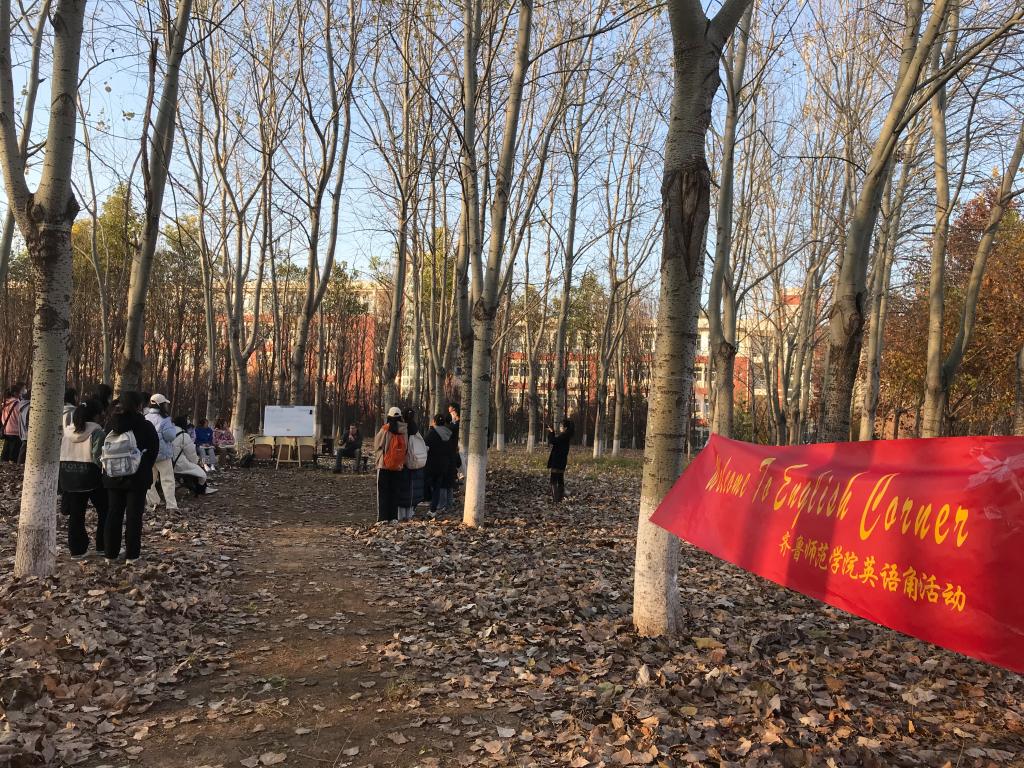 永利官网校园英语角由国际交流与合作处发起设立,由外国语学院组织管理,将长期设立。本学期英语角活动固定时间为每周二下午3:40到4:50,将根据天气情况在图书馆西侧路北杨树林或2号教学楼B235教室定期开展。