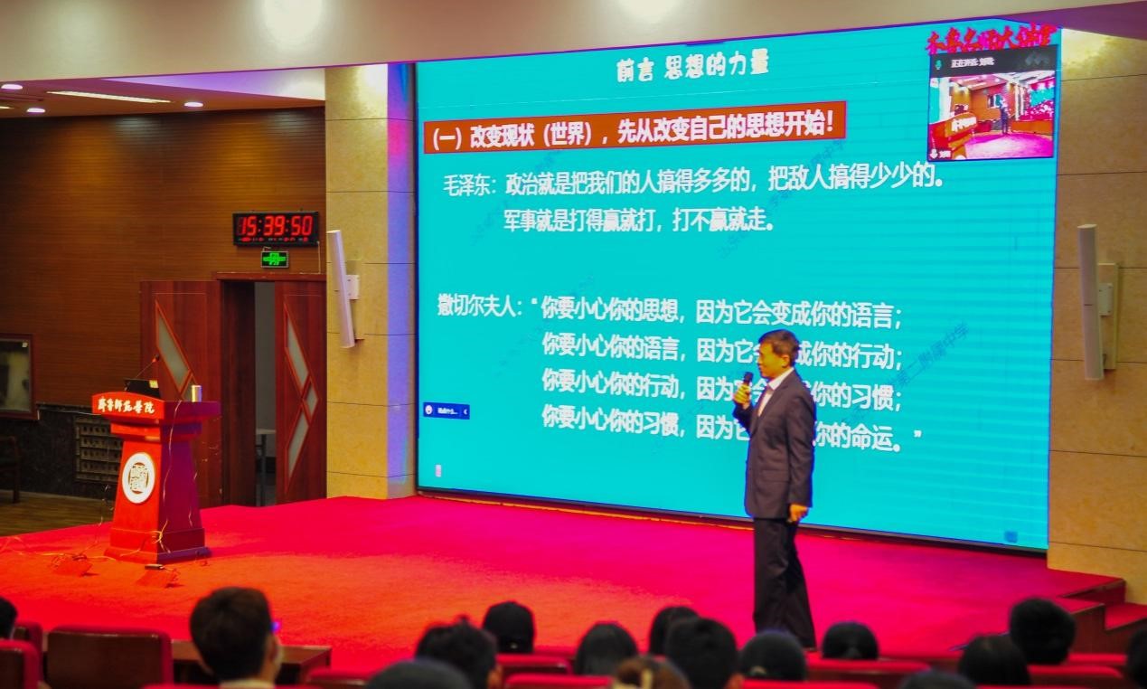 董丰富以《我的未来不是梦——职业规划从学习开始》为题,阐述了职业规划的“三要素”和“四戒”,指出职业规划要从学习开始,并告诫同学们要不断向他人学习、向书本学习、向实践学习和向网络学习。董丰富用图文并茂的方式举例说明了思想的力量,他提出“改变现状,先从改变自己的思想开始”和“干成事业,先从职业规划开始”等职业观,并通过分享自身成长经历,让学生对未来职业发展有了更加明晰的认识。