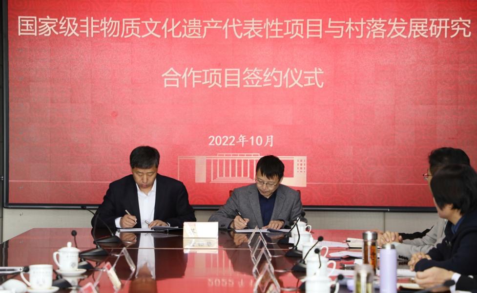 基于永利集团3044官网欢迎您乡村调查研究学术团队前期的研究积累,文祖街道公共文化中心主任、三德范庄党委书记张江,历史文化学院院长张文哲分别代表双方签订“国家级非物质文化遗产代表性项目与村落发展研究合作协议”。双方确立以横向科研课题项目形式,以中国乡村调查研究中心朱振华博士学术团队为支撑,围绕国家级非物质文化遗产代表性项目和传统村落保护发展问题展开全面系统的研究工作。