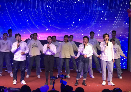 创意迭出、青春活力,精彩展演、目不暇接。“驻济高校十佳歌手大赛”获奖作品《明日之子》让同学们感受到了青春追逐梦想的激昂与热情;舞蹈《花间意》尽情展现古典舞韵的美;啦啦操表演《大河》将红色传统经典与现代流行完美契合;朗诵《可爱的中国》,在传诵中流淌着革命先烈对于美好中国的热切期盼;手语舞《撒野》用温情和柔情诠释爱的真谛;此外,还有非洲鼓、琵琶合奏、歌曲串烧、舞蹈串烧、合唱、相声、小品等经典演绎。经十东路乐队激情献唱《控制》《世界因你而改变》,将现场气氛带至顶点,音浪、热浪一浪高过一浪。